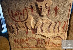 Jætten Ægir. Havets konge, der modstræbende brygger øl, til gudernes selvindbudte gilde. Inspireret af et flere tusinde år gammel helleristning